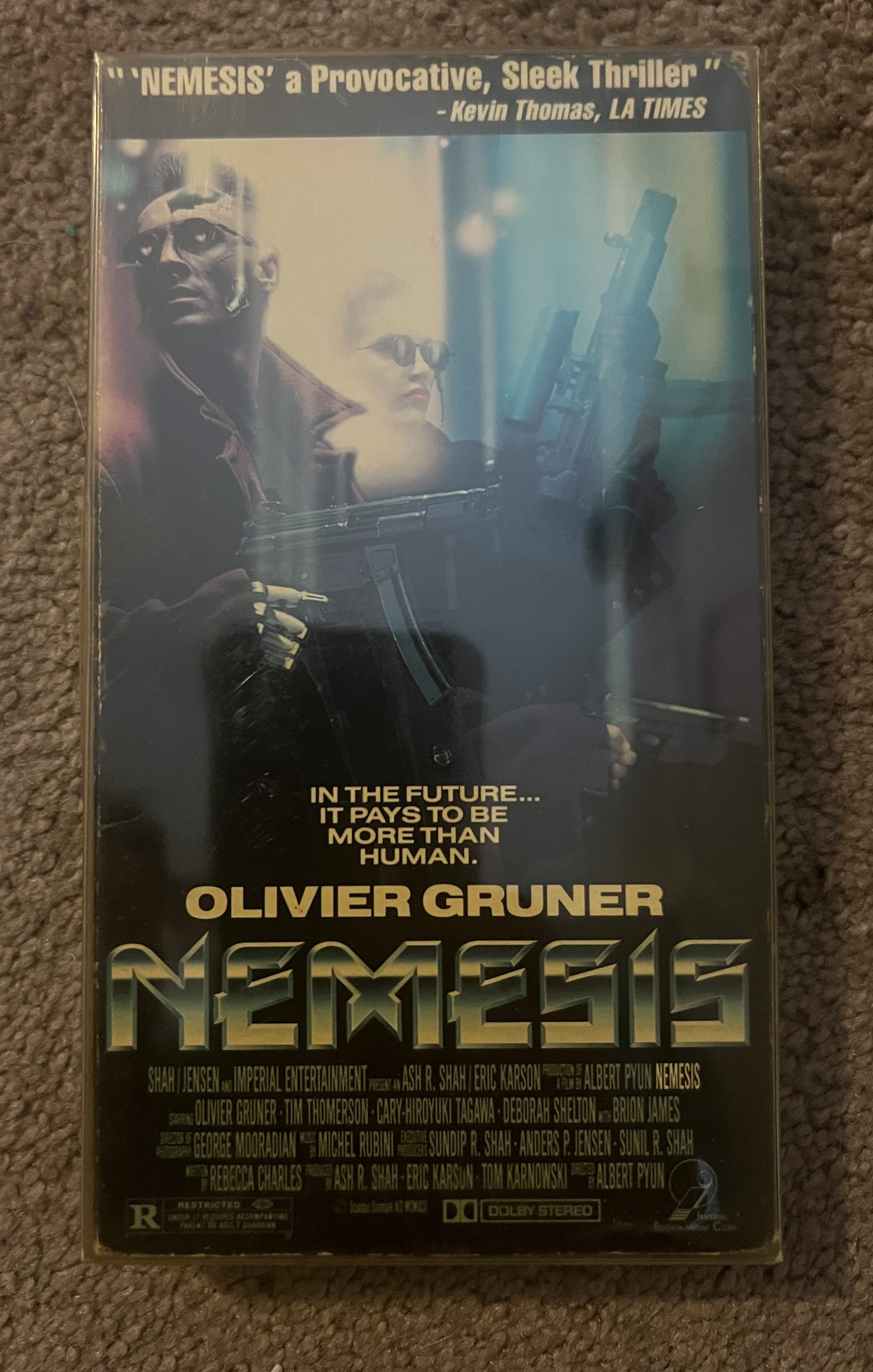 Former Rental VHS tape in good shape and plays well. Original cardboard case in old discolored plastic protection sleeve.